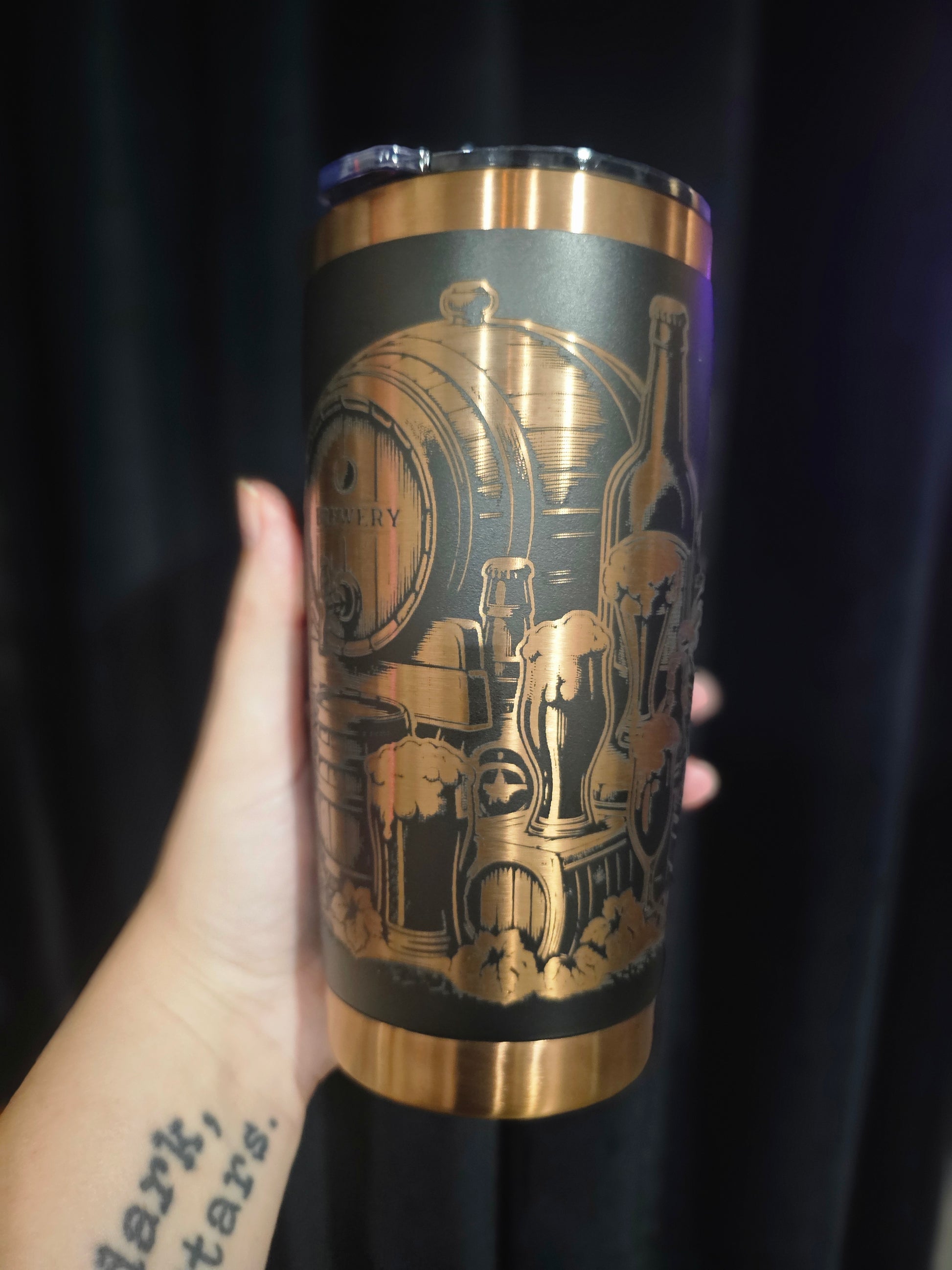 Introducing the perfect companion for your next party or tailgate - our Beer Keg! Its double walled stainless steel design keeps your beer ice cold for hours. The sleek black and copper finish adds a touch of style to your drinkware collection. Cheers!